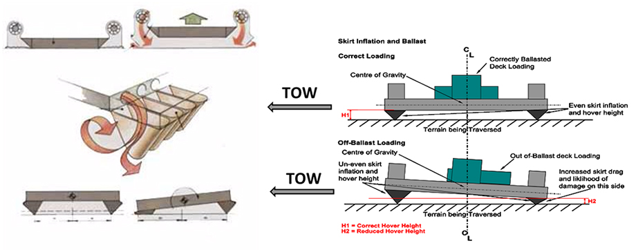 The skirt design will give the desired hover height and add stability to the craft as the centre of pressure shifts.